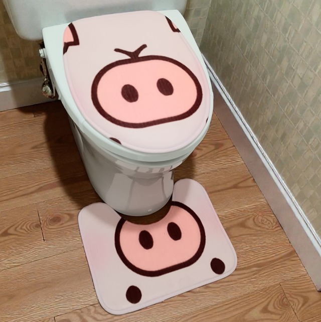 ブタ顔 トイレ&バスマット 3点セット