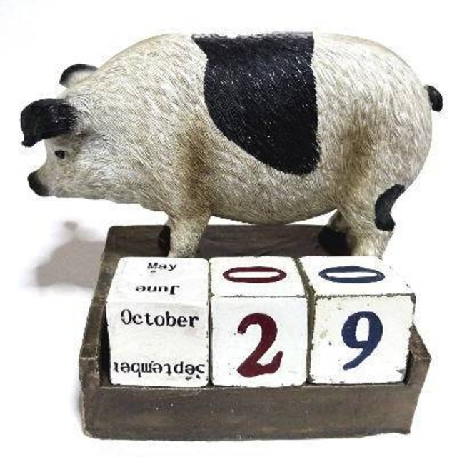 アンティークの木彫りのようですが、レジン製です。 コロンろした白い子豚とかぼちゃがかわいいですね。 中国製 材質 レジン ブタの体長 12cm ※傷や汚れは、アンティーク風にするために、もともと付けているものです。