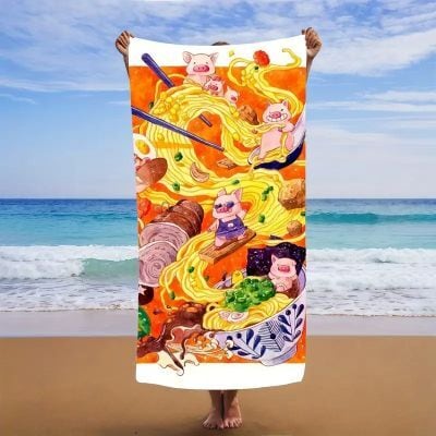 ラーメンで波乗りしているような、とっても楽しいバスタオルです。
