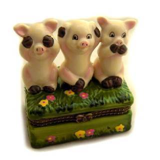 3匹のコブタが、見ざる言わざる聞かざるのポーズなのが面白いですね。