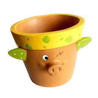 ウィンクした表情と水玉模様がキュートなブタのポット。