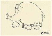 ピカソがデッサンしたブタのカードです。