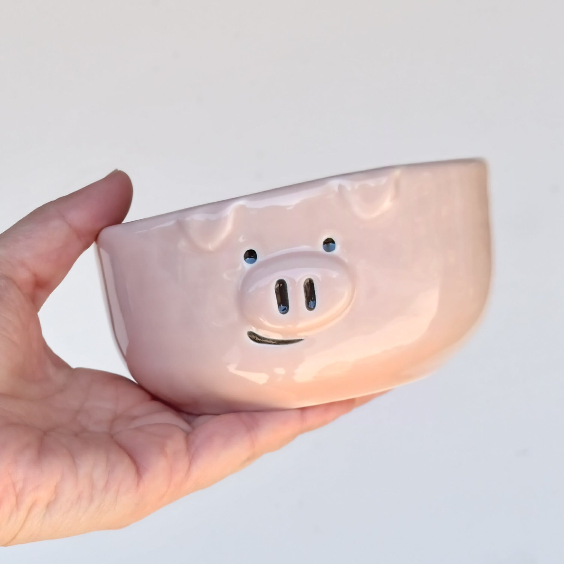 手びねり風でちょっと厚手、手触りも色も優しいピンクの食器です。