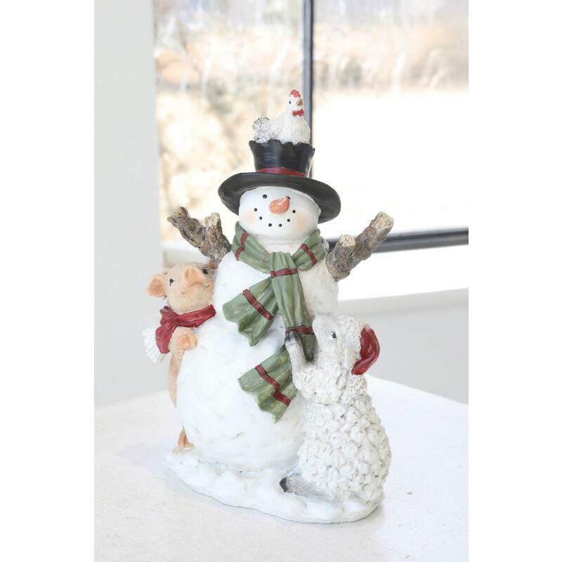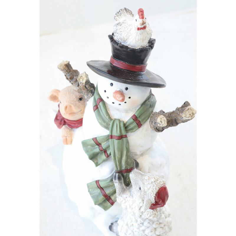 ブタさんとヒツジさんでスノーマン作りに挑戦?